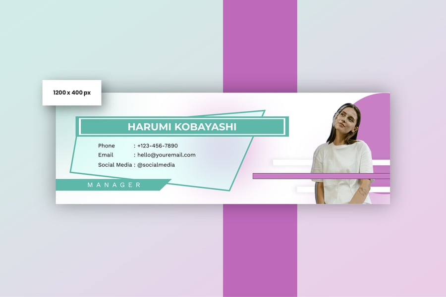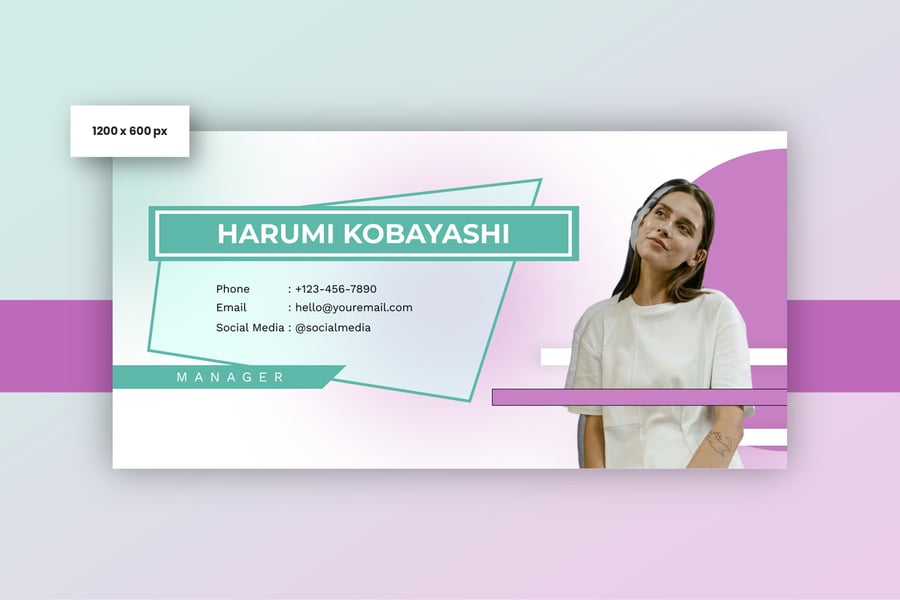 简洁专业的电子邮件签名设计,适用于商务或个人用途。一款设计提供三种不同尺寸,满足您的多种需求。现代、优雅、简洁的设计风格,令您的电子邮件签名更显专业。