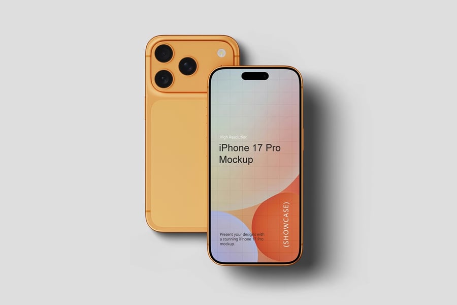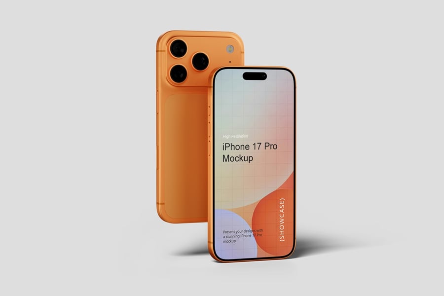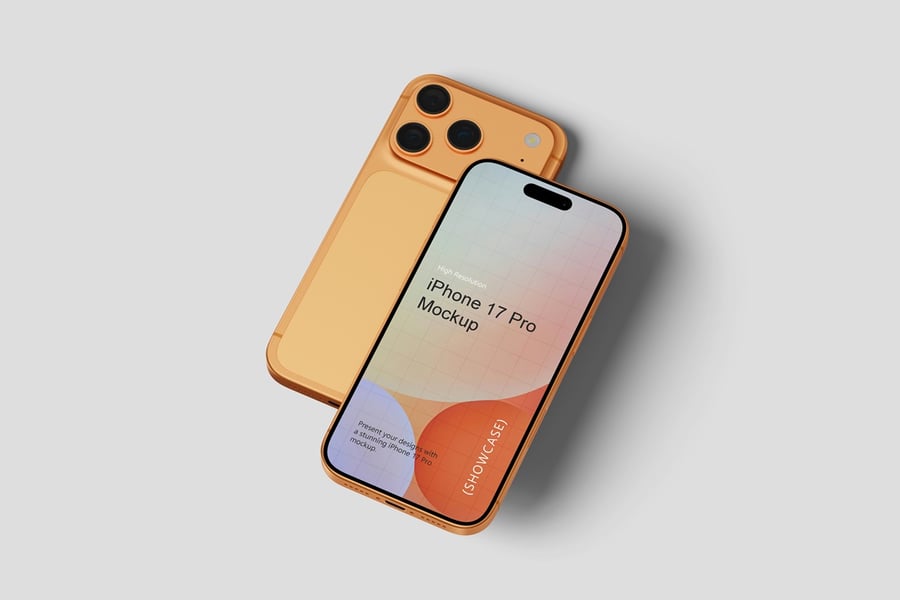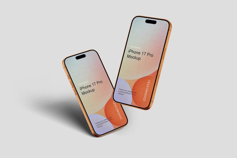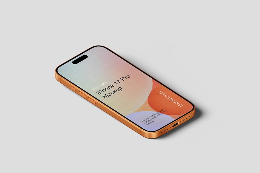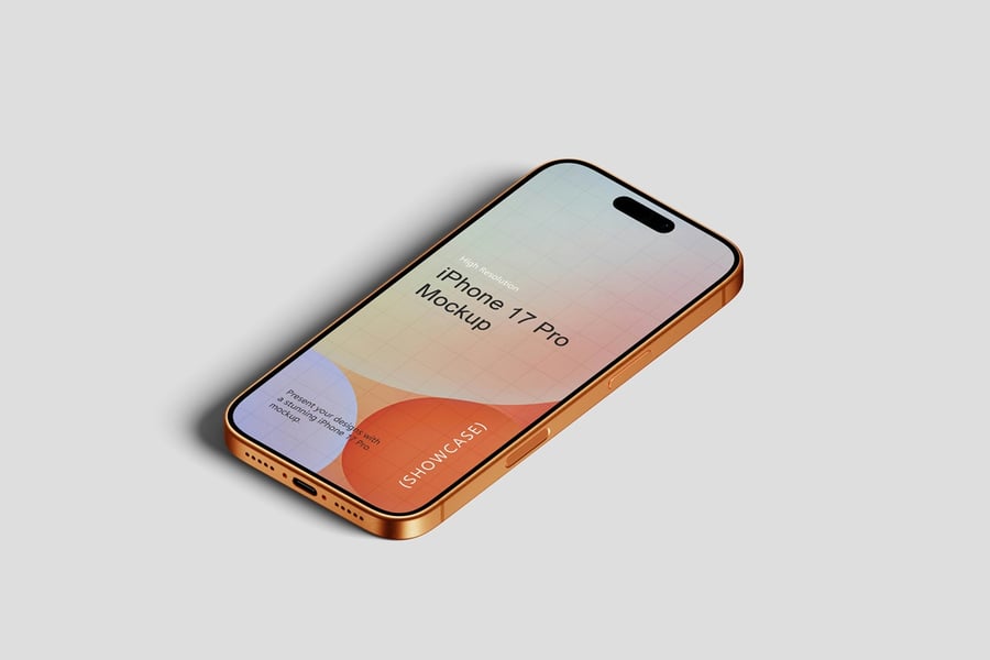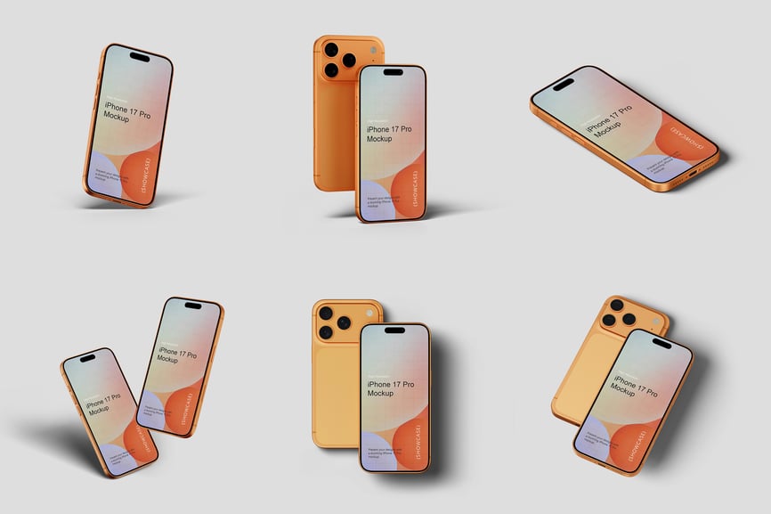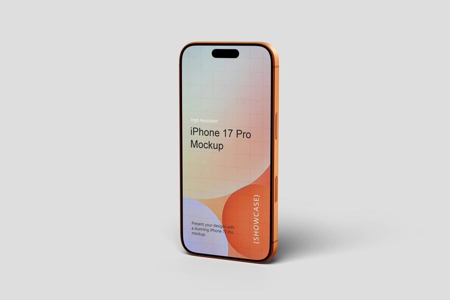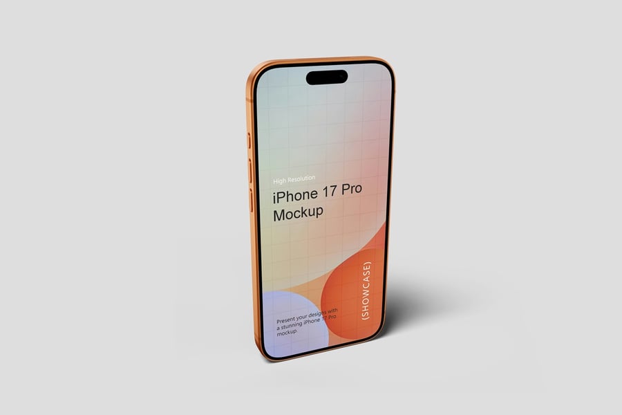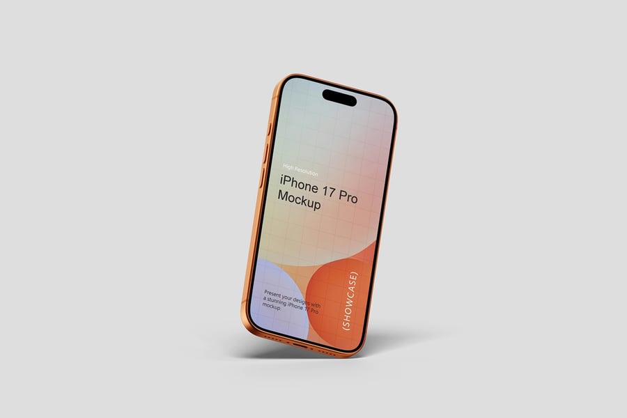 使用逼真的 iPhone 17 Pro 模型展示您的专业设计作品,完美呈现您的品牌和设计理念。这款模型只需点击几下即可助您创建精美的高质量图像,完美展现您的设计。您将获得 10 个不同风格的 PSD 文件和 1 份 PDF 使用说明文件。