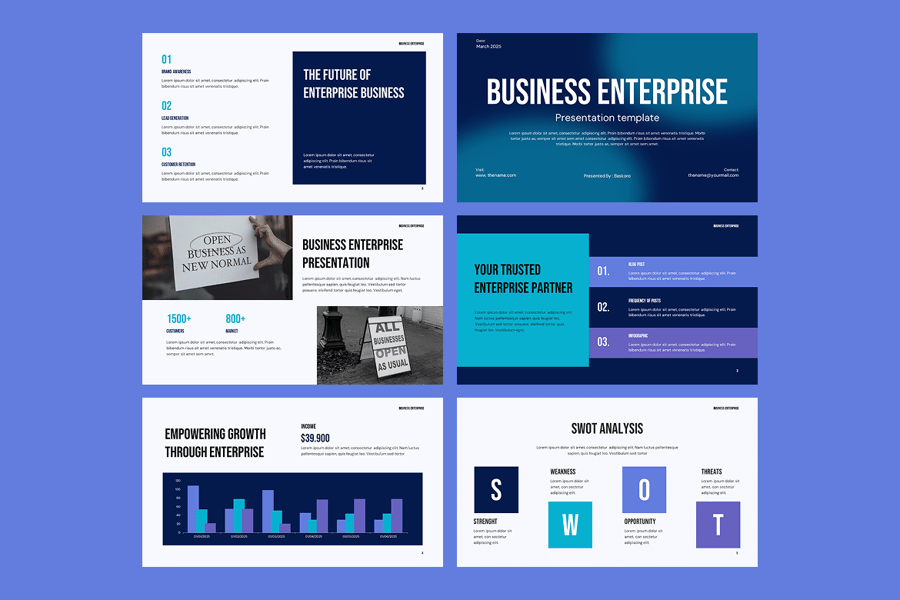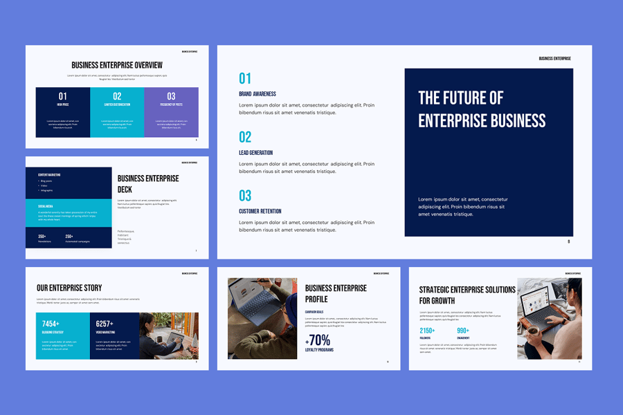 隆重推出企业级 Google 幻灯片演示模板——一套优质、现代且完全可定制的企业幻灯片模板,旨在提升您的商务演示效果。该模板适用于初创公司、大型企业、公司会议、商业提案、年度报告、项目提案、公司简介演示和战略规划,助您清晰自信地传达理念。