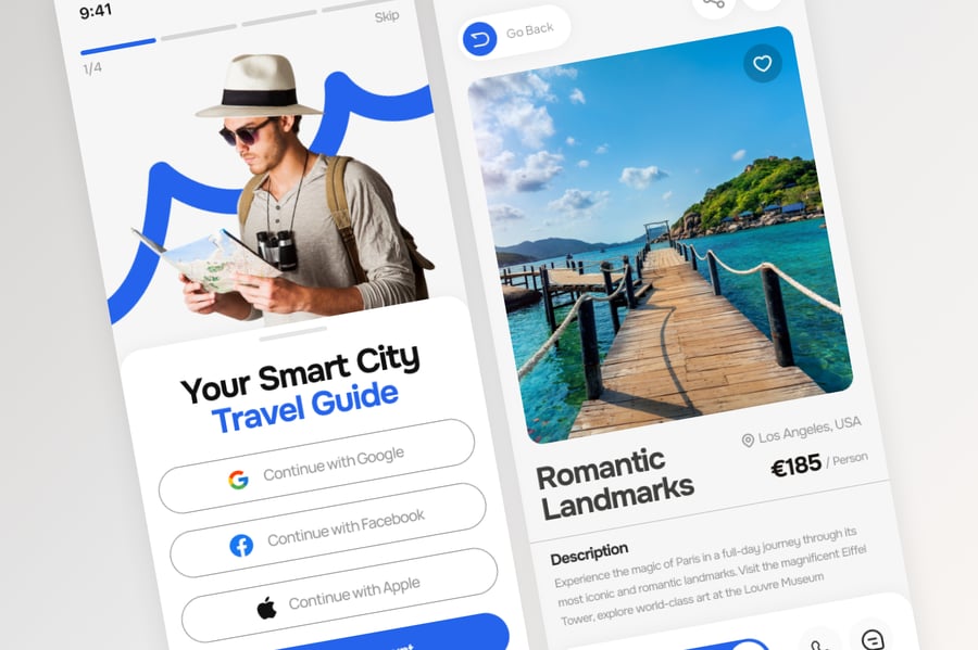 使用这款专业设计的模板,轻松打造极具影响力的城市指南和旅游移动应用。