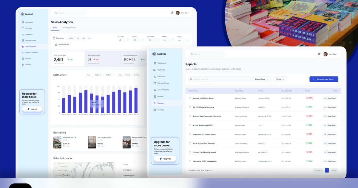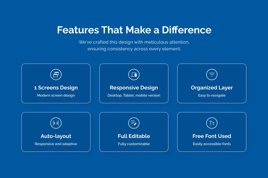 该模板拥有清晰的文本层级和流畅的视觉节奏,在保持简洁、科技感十足的氛围的同时,显著提升了可读性。巧妙的蓝橙配色增强了行动号召按钮的可见度,而低调的霓虹色点缀则强化了增长、分析和数字专业性的概念。此布局非常适合旨在提升下载量或销售额的作者、教练和企业,同时还能迅速建立信任,巩固其在数字学习市场的专家地位。