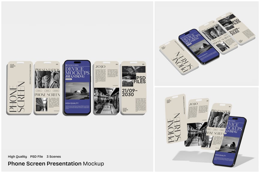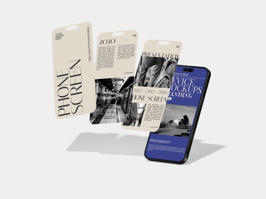 使用这款**手机屏幕演示模型**展示您的移动界面和数字内容,它非常适合**应用演示、UI/UX演示、创业公司路演和产品展示**。该模型注重清晰的屏幕显示和专业的布局,以实现极具影响力的视觉传达。