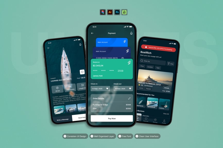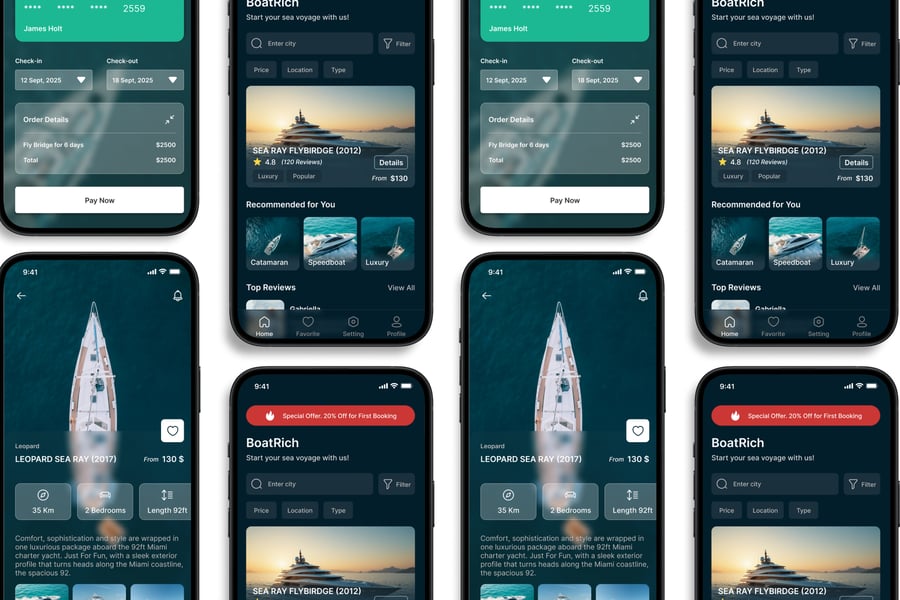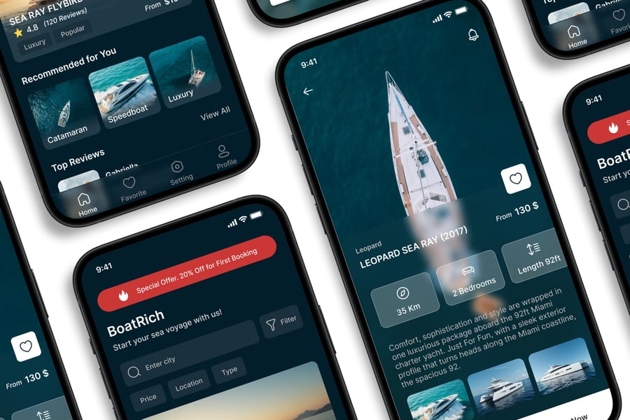 游艇租赁 – 移动应用 UI 套件