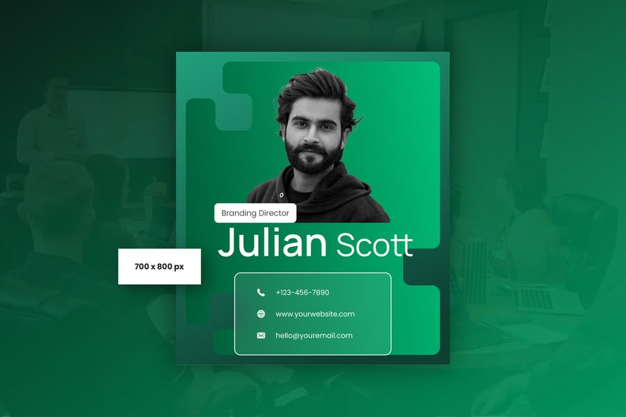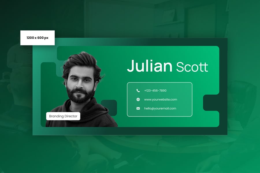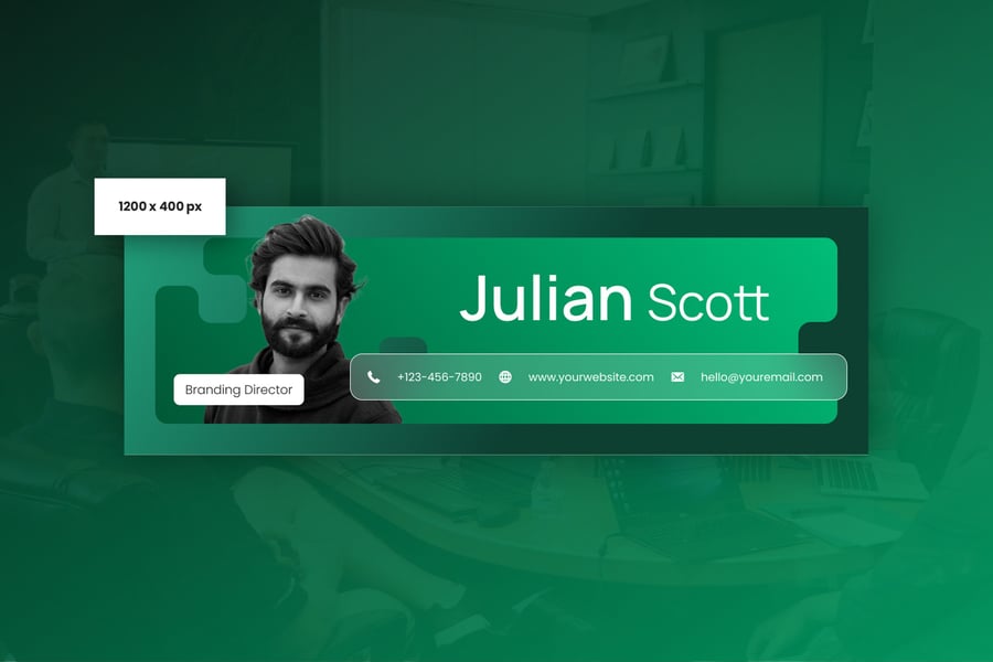 简洁专业的电子邮件签名设计,适用于商务或个人用途。一款设计提供三种不同尺寸,满足您的多种需求。现代、优雅、简洁的设计风格,令您的电子邮件签名更显专业。