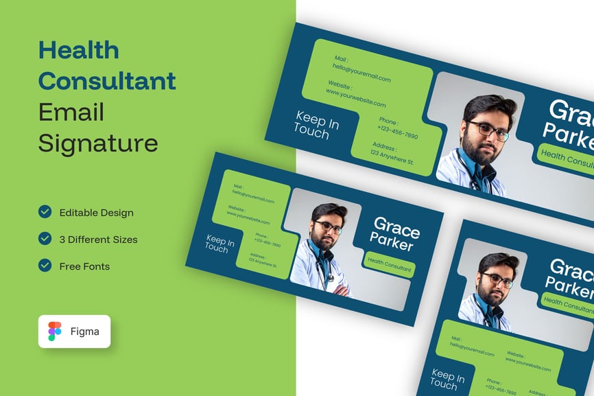 简洁专业的电子邮件签名设计,适用于商务或个人用途。一款设计提供三种不同尺寸,满足您的多种需求。现代、优雅、简洁的设计风格,令您的电子邮件签名更显专业。