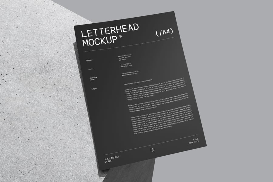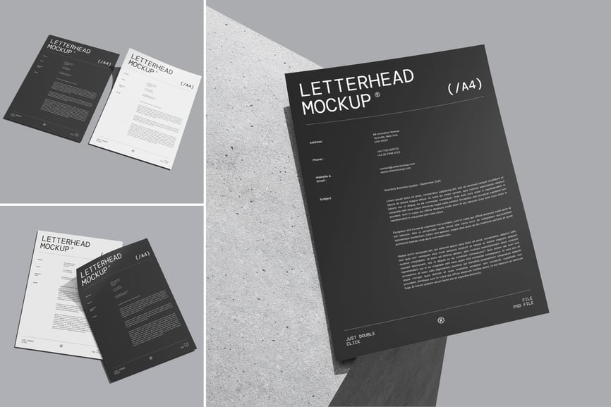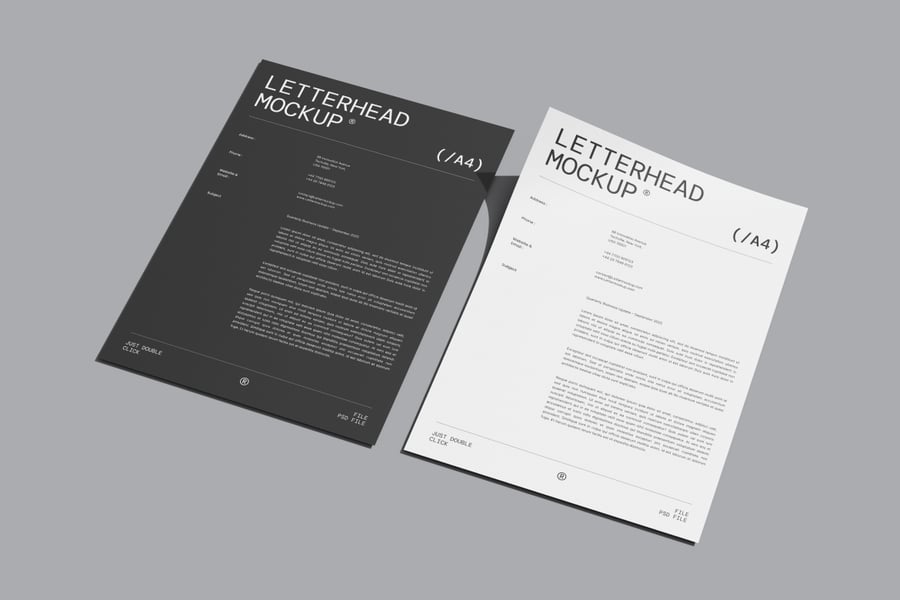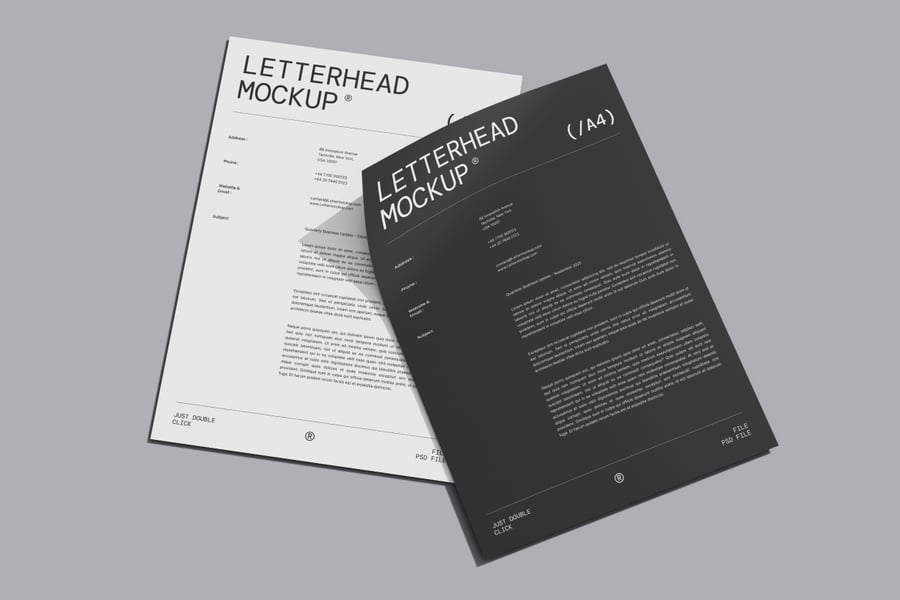 这款信头样机是一款专业的 Photoshop 模板,旨在以简洁、现代且逼真的布局展示企业信笺和正式文件设计。该样机采用高分辨率,拥有自然的阴影和精准的纸张比例,能够清晰地突出字体、间距和品牌细节。