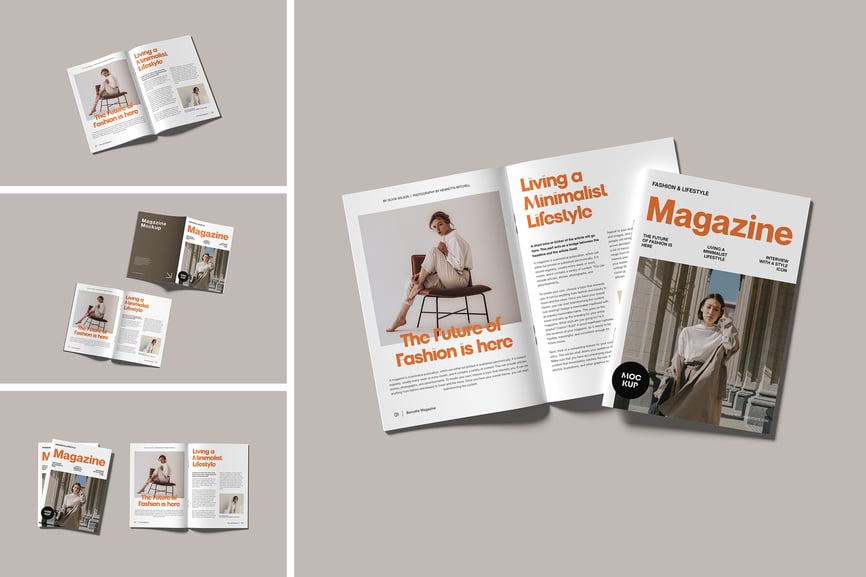 用这些精美的样机展示您的杂志样机。此样机包含 4 个元素,并配有分层清晰的 PSD 文件。此外,此样机还采用了智能对象功能,这意味着您只需几秒钟即可轻松快捷地将当前设计替换为您自己的设计。