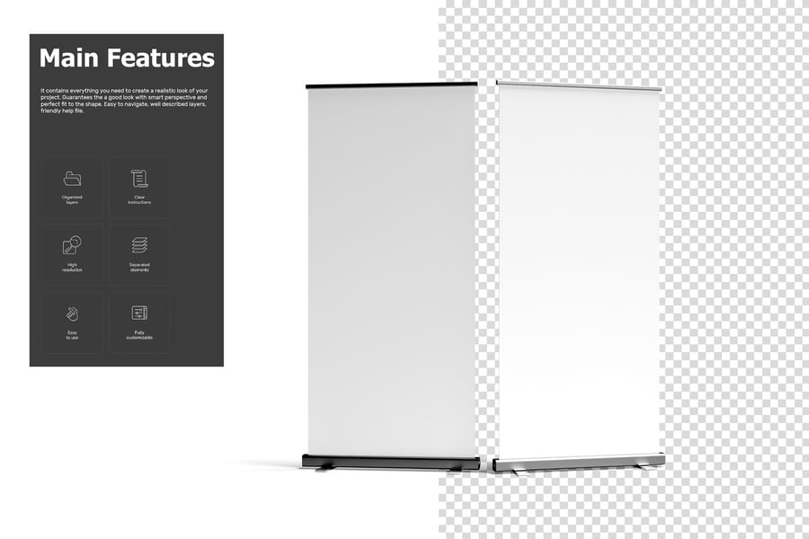 它包含了打造逼真项目效果所需的一切。凭借巧妙的透视效果和与形状的完美贴合,确保呈现出色的视觉效果。易于操作,图层描述清晰,并附有友好的帮助文件。
