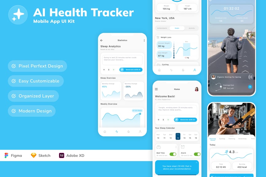 AI健康追踪器移动应用UI套件
