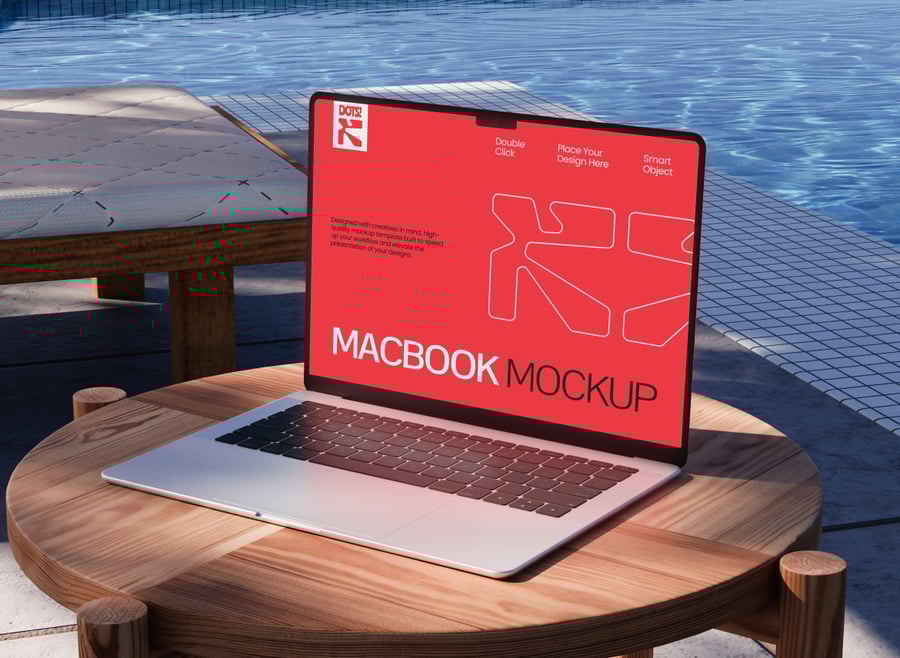 这款泳池边的 MacBook 模型将为您的数字演示增添清新时尚的生活方式气息。模型中,MacBook 置于轻松惬意的泳池畔,巧妙融合科技与休闲,打造出引人注目的视觉效果,使其在众多工作场景中脱颖而出。逼真的光照、反射和专业的构图,确保您的屏幕设计生动逼真,引人入胜。
