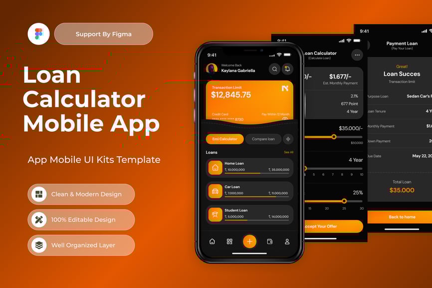 使用这款专业设计的模板,轻松打造功能强大的贷款计算器移动应用。