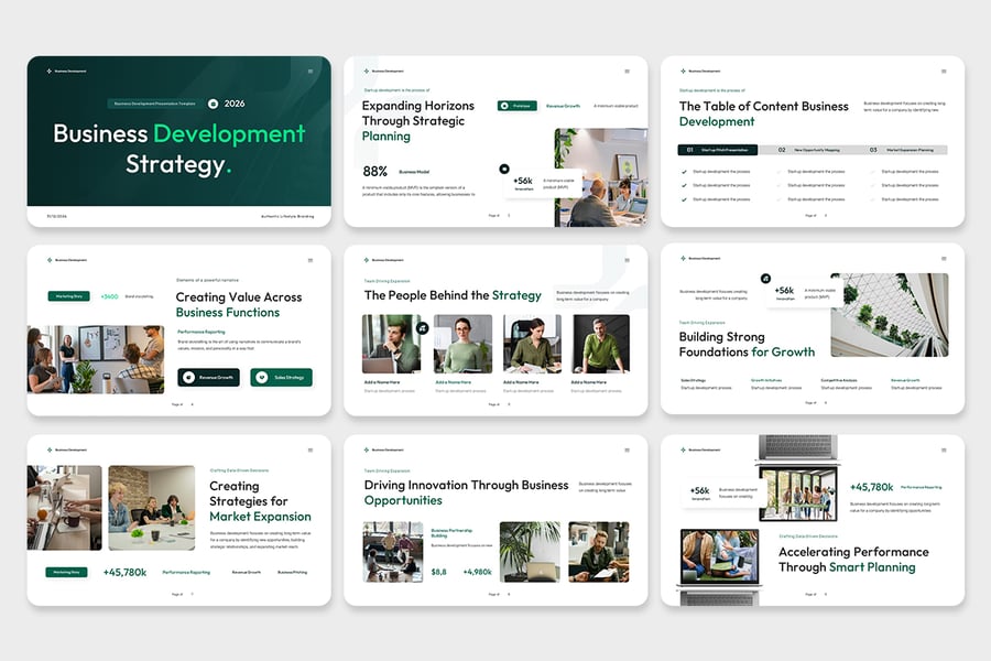使用“业务拓展”模板,将您的商务演示提升至全新的专业水准。这款简洁现代且完全可定制的演示模板专为具有前瞻性思维的公司、咨询顾问、创业者和企业团队而设计。它完美适用于商业提案、投资者路演、市场分析、战略规划和以增长为导向的演示——该模板可将您的想法转化为极具说服力的视觉效果,助您赢得交易并给利益相关者留下深刻印象。