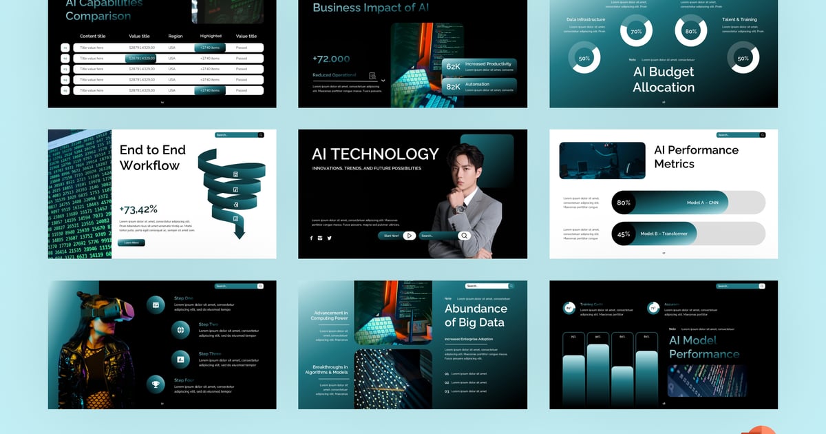 报告演示、管理演示、KPI演示、数据可视化演示、信息图表演示、时间线演示、市场营销演示、销售演示、业务对比演示、业务数据演示、仪表盘演示、推介演示文稿演示。