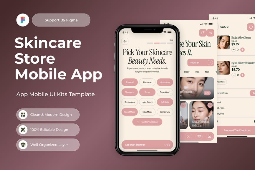 使用这款专业设计的模板,轻松打造极具影响力的护肤品商店移动应用。
