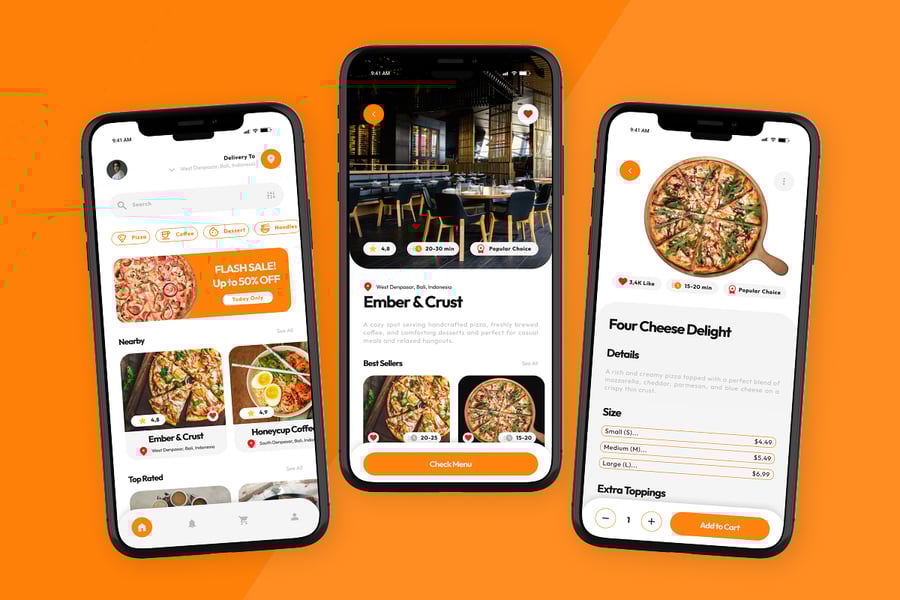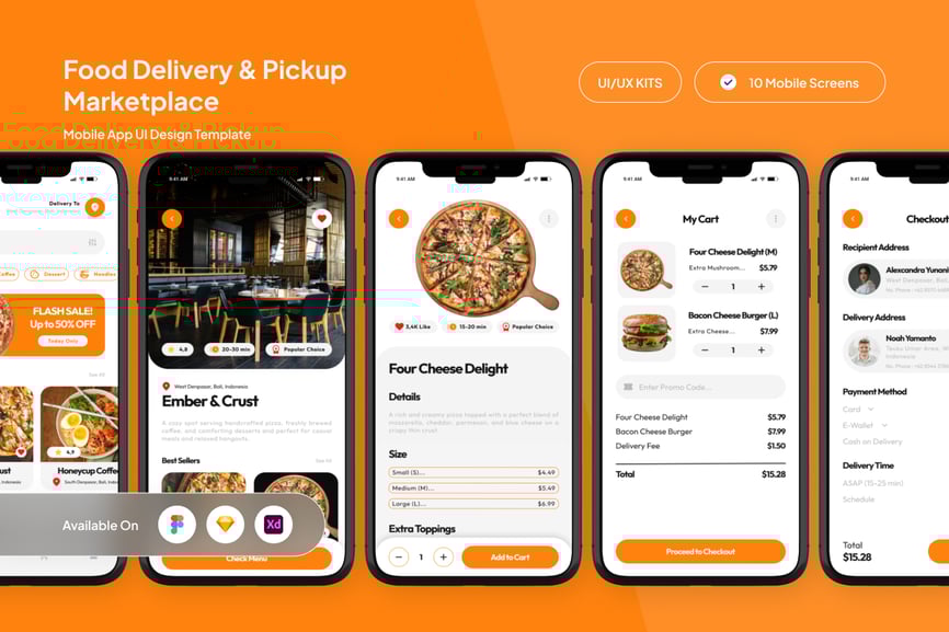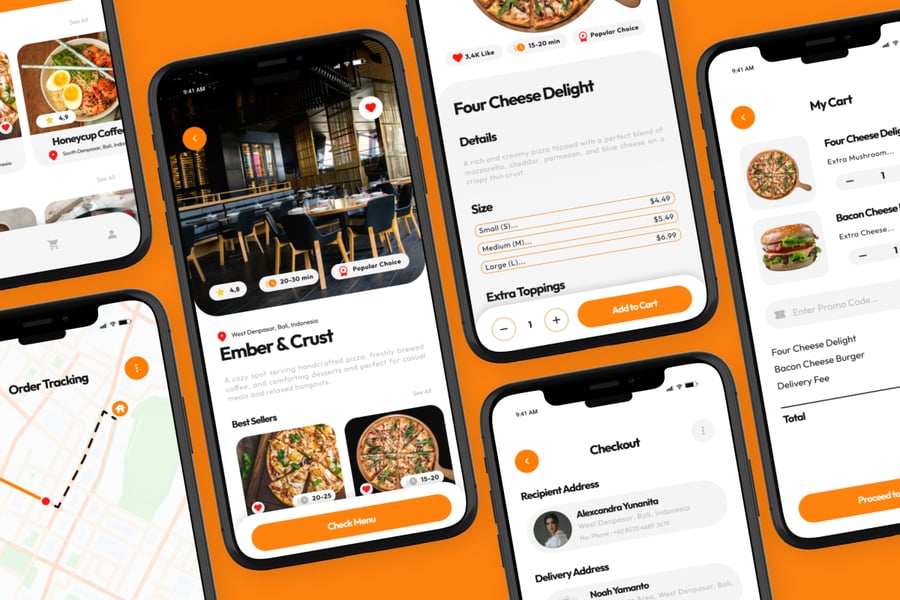 这款设计非常适合希望以可爱又不失专业感的外观脱颖而出的外卖平台、餐厅服务和点餐应用。对于打造现代化、用户友好型订餐体验的设计师来说,这是一个强大的用户界面选择。