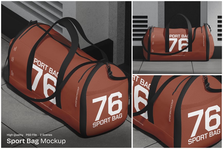 这款**运动包样机**可完美展示您的运动或旅行品牌,非常适合**运动商品、健身配件、旅行包和促销产品**。该样机突出了面料纹理、缝线细节和宽敞的品牌展示区域。