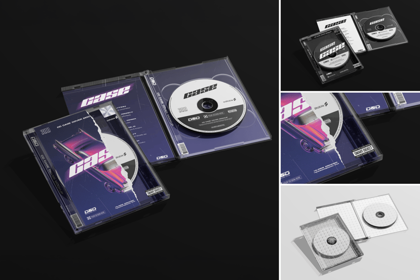 * **内容:** 一个CD盒,分别展示正面、背面和内部(含光盘)。