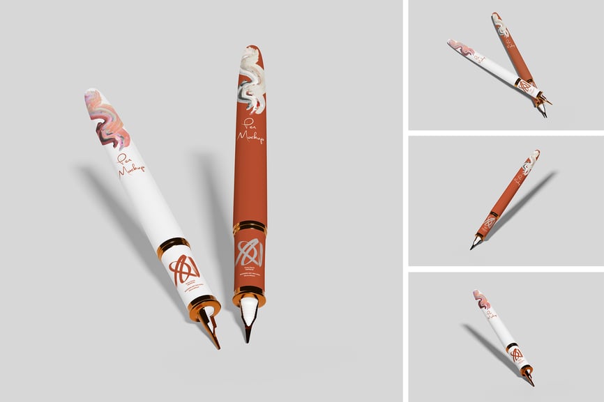 用这些精美的样机展示您的钢笔样机,打造品牌形象和文具设计。此样机包含 4 个项目,采用分层清晰的 PSD 文件,并利用智能对象功能,让您只需几秒钟即可轻松快捷地将当前设计替换为您自己的设计。