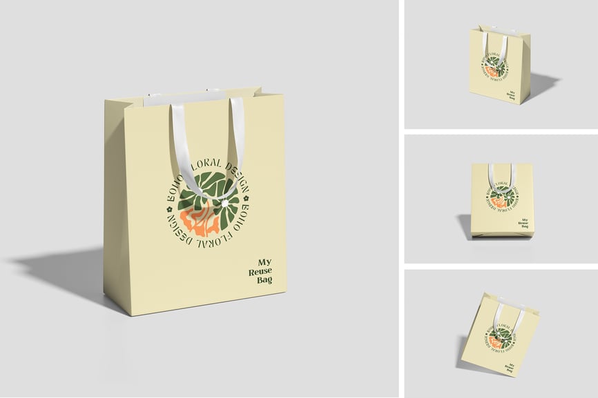 用这些精美的样机展示您的高品质购物袋样机设计。此样机包含 4 个项目,并提供分层清晰的 PSD 文件。此外,此样机还采用了智能对象功能,这意味着您只需几秒钟即可轻松快捷地将当前设计替换为您自己的设计。