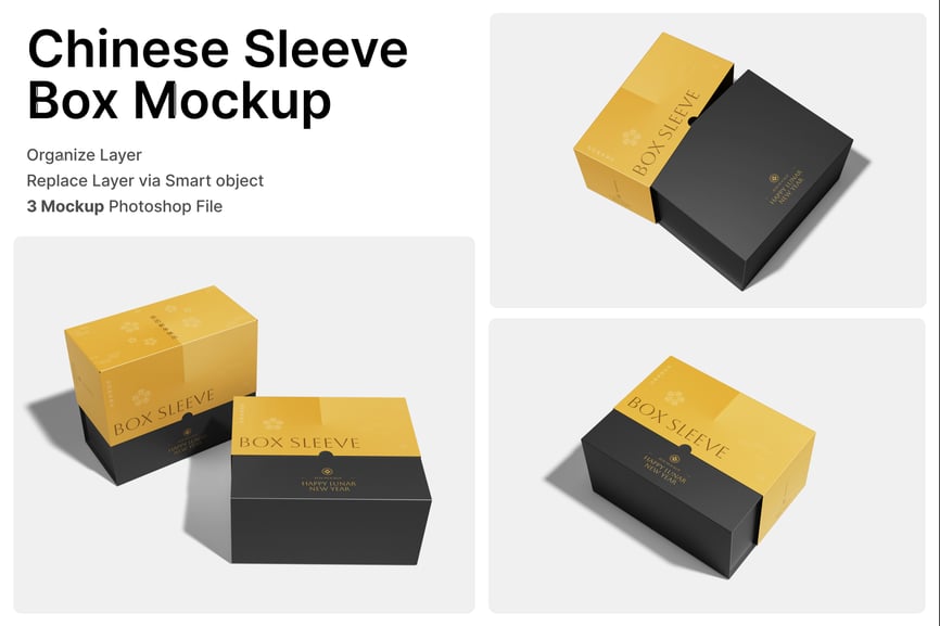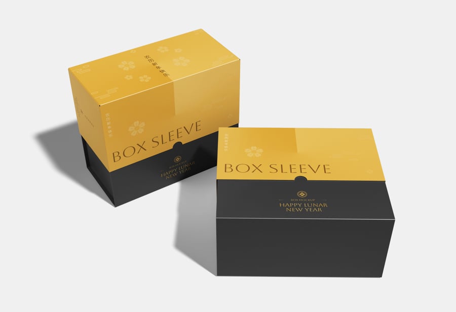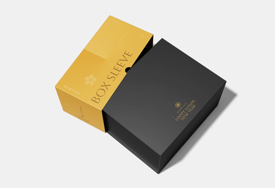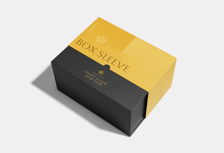 这款中式套筒盒样机展示了一种高端包装设计,其特点是硬质矩形盒搭配滑动式外包装套。该结构由一个坚固的内盒和完全包裹的纸质外包装套组成,品牌标识可以展示在顶部、侧面和正面拉环区域。样机突出了优雅的比例、锐利的边角和精致的表面处理,其灵感源自中国传统和农历新年包装美学。该样机以多个逼真的角度呈现,使用高分辨率 PSD 文件和智能对象图层,方便用户进行精确自定义,同时保持自然的阴影和材质深度。