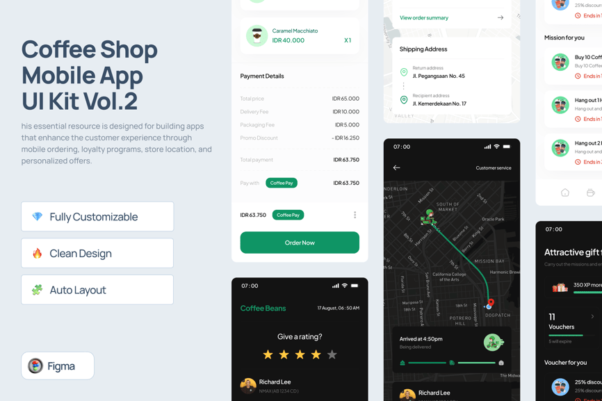 使用咖啡店移动应用 UI 工具包,为您的咖啡馆或连锁咖啡店打造设计精美、便捷易用且功能丰富的移动应用。这款必备资源旨在帮助您构建能够提升顾客体验的应用,例如移动点餐、会员计划、门店定位和个性化优惠等功能。