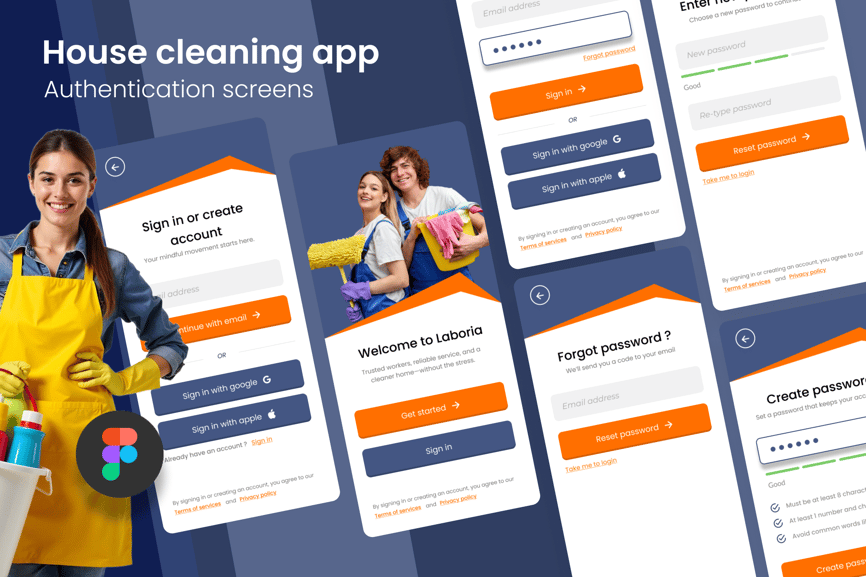 **家政服务身份验证界面 UI 套件 – 简洁现代的移动应用登录设计**