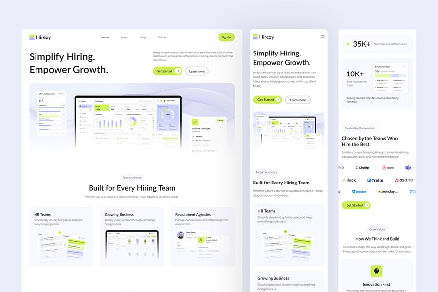 Hirezy – 招聘 SaaS 网站 UI Figma