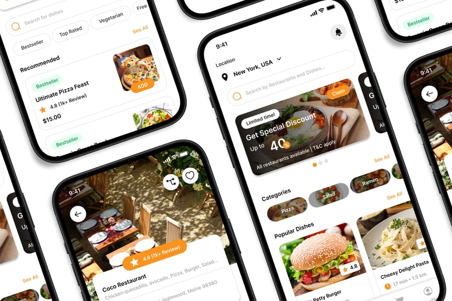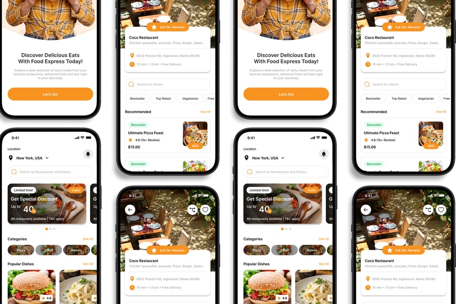 隆重推出**外卖配送**移动应用UI工具包,这是一款现代化且功能全面的解决方案,可助您轻松创建简洁易用的应用界面。对于希望加快设计流程的设计师和开发者而言,这款UI工具包堪称完美之选,它将您所需的所有基本组件整合在一个井然有序的软件包中。