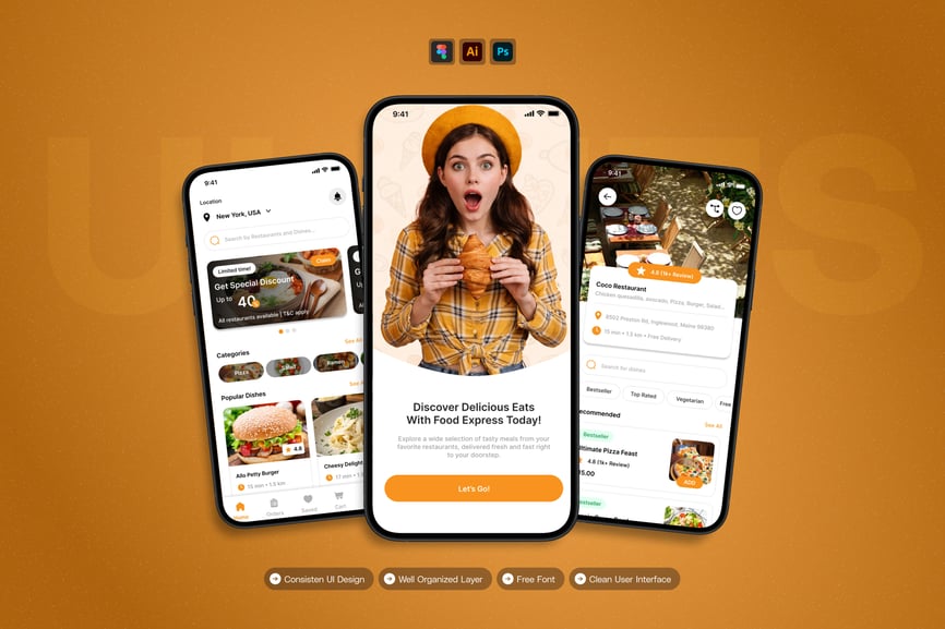 这款**外卖应用** UI 套件的设计重点在于易用性和一致性,让您轻松打造美观实用的移动应用。每个元素都经过精心设计,完全可定制,并可根据您的品牌进行调整。无论您是设计社交应用、电商应用还是效率工具,这款套件都能让您灵活地将创意变为现实。