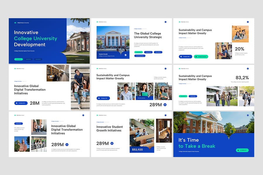 大学演示模板是一款现代专业的幻灯片模板,专为教育机构、学术活动、校园推广和大学项目而设计。该模板布局简洁,视觉层次分明,字体精美,在传递清晰信息的同时,营造出令人振奋的学术氛围。