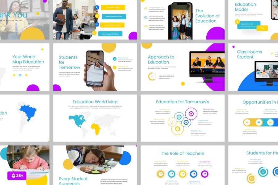 通过教育赋能思维——此模板以引人入胜的视觉效果、现代化的布局和关键要素,展现学习的精髓,用于展示创新理念、学术成就和学校举措。是追求卓越的教育工作者、学生和机构的理想之选。