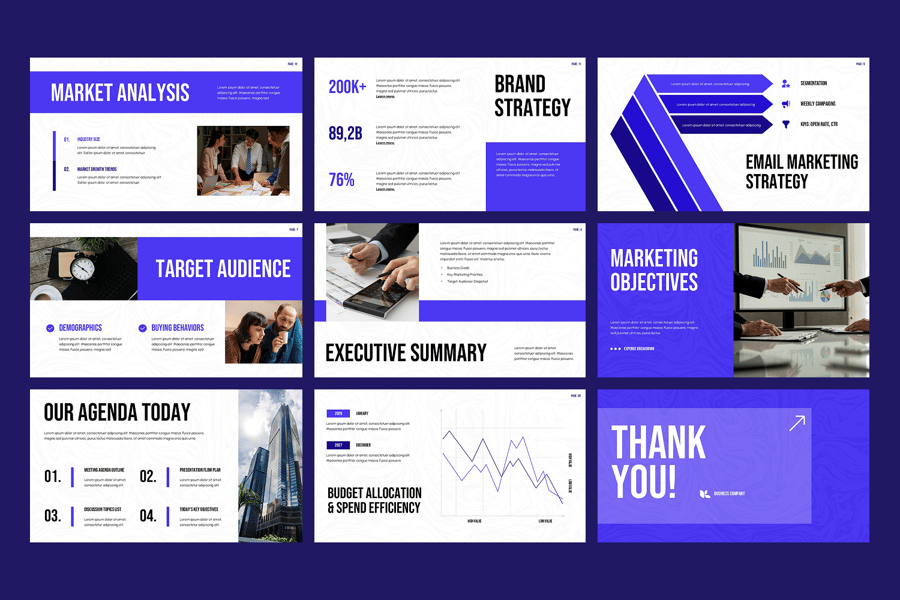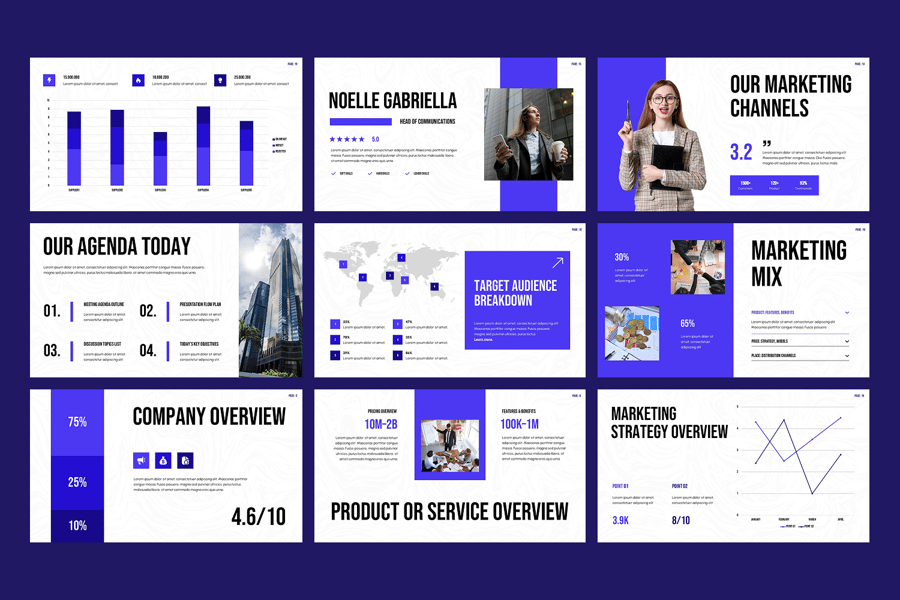 使用此模板打造引人入胜的演示文稿。模板包含专业设计的幻灯片,可全面展示您业务的各个关键方面,从公司概况和价值主张到财务数据和团队简介,应有尽有。其现代化的布局、精美的视觉图形和可编辑的图表,让您轻松讲述品牌故事并有效地呈现数据。该模板可完全自定义,适用于任何行业,助您打造吸睛且效果显著的演示文稿。适用于营销演示、营销计划模板、战略演示、数字营销幻灯片、商业提案演示文稿、营销漏斗、SWOT 分析、KPI 幻灯片、营销目标、产品发布演示、营销活动策略、品牌营销、广告提案、Google Slides 营销、PowerPoint 营销演示文稿等。