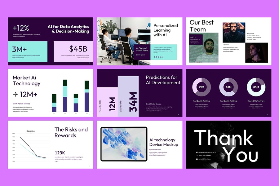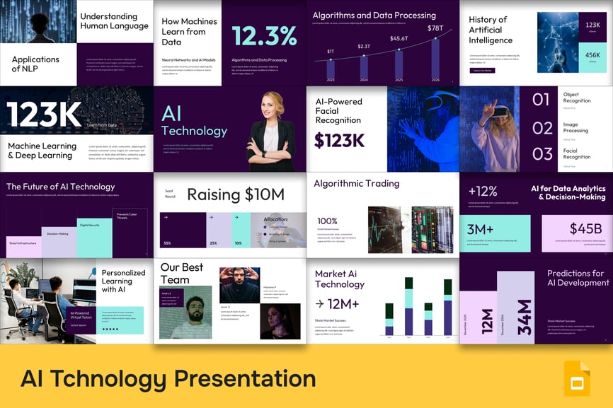 使用**人工智能技术**提升您的演示效果。这款人工智能技术演示模板设计简洁时尚,充满科技感,专为人工智能初创公司、数据科学团队和科技创新者打造。无论您是推介人工智能解决方案、讲解机器学习模型,还是向投资者或企业客户进行演示,此模板都能让复杂的主题变得通俗易懂、引人入胜。