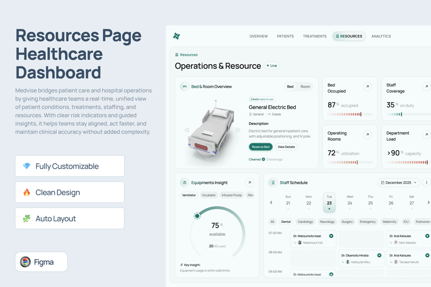 Medvise 是一款资源页面医疗保健仪表盘,设计简洁、现代,包含高质量的屏幕。Medvise 易于定制,可满足您的各种需求。提供浅色模式,并可在 Figma 中轻松使用。