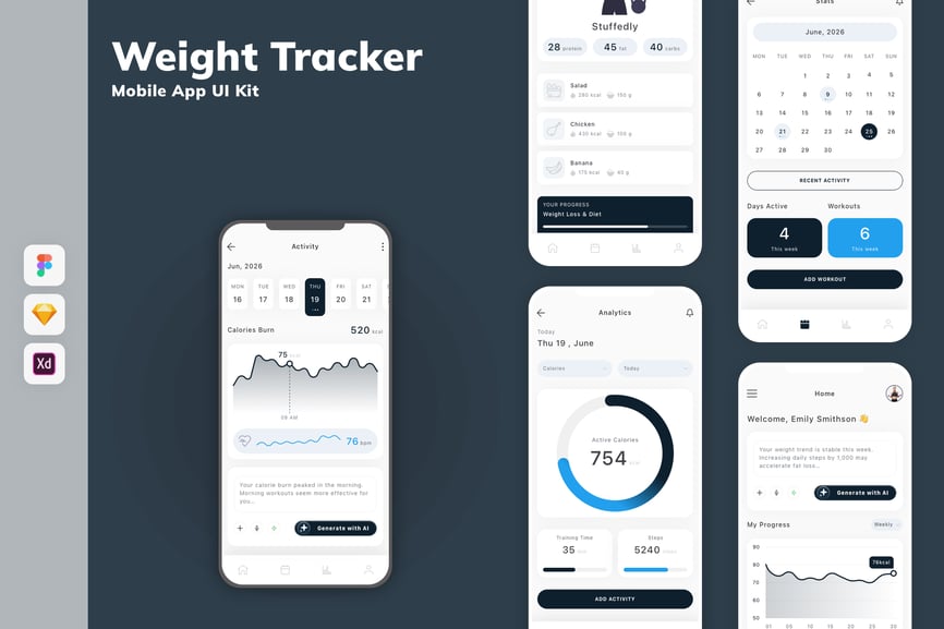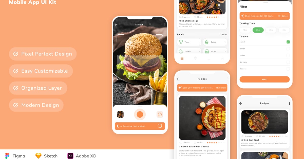 我们的 UI 工具包经过精心设计,可完美适配 Figma、Sketch 和 Adobe XD。所有文件都组织有序,命名规范,因此您可以轻松修改任何设计。