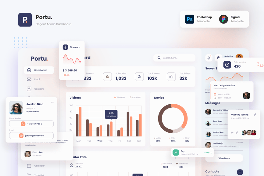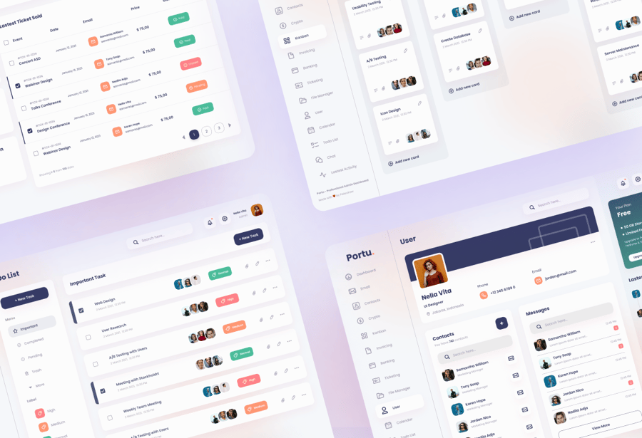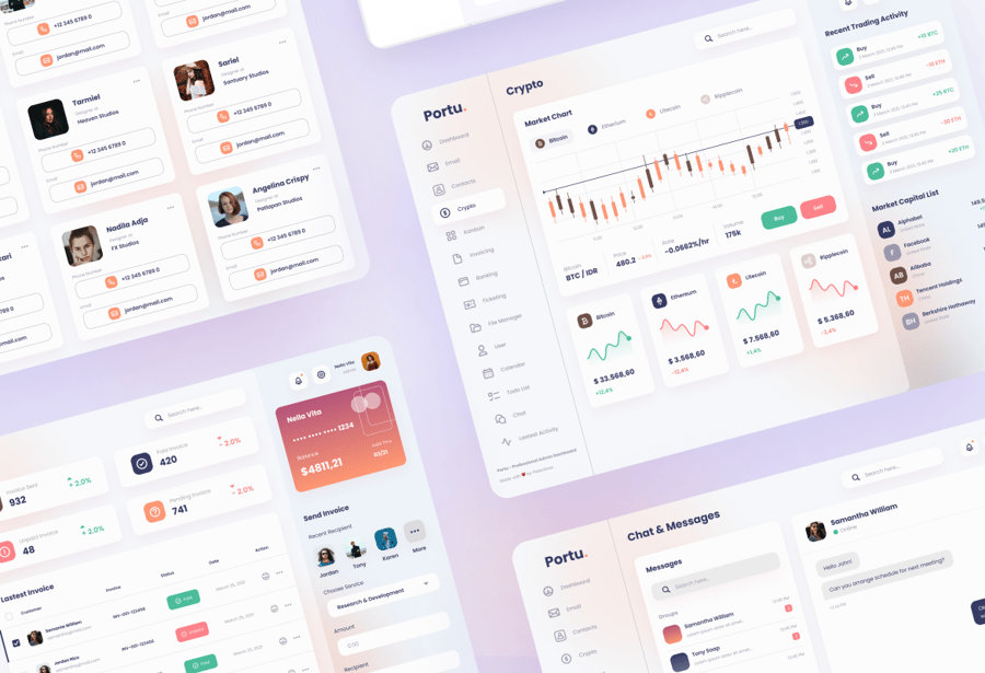 使用 Portu,这款优雅专业的后台管理模板,轻松管理公司所有项目和活动,满足您的各种需求。它适用于公司管理、项目管理、邮件管理、发票管理、日历管理、加密货币管理、看板管理等多种场景。