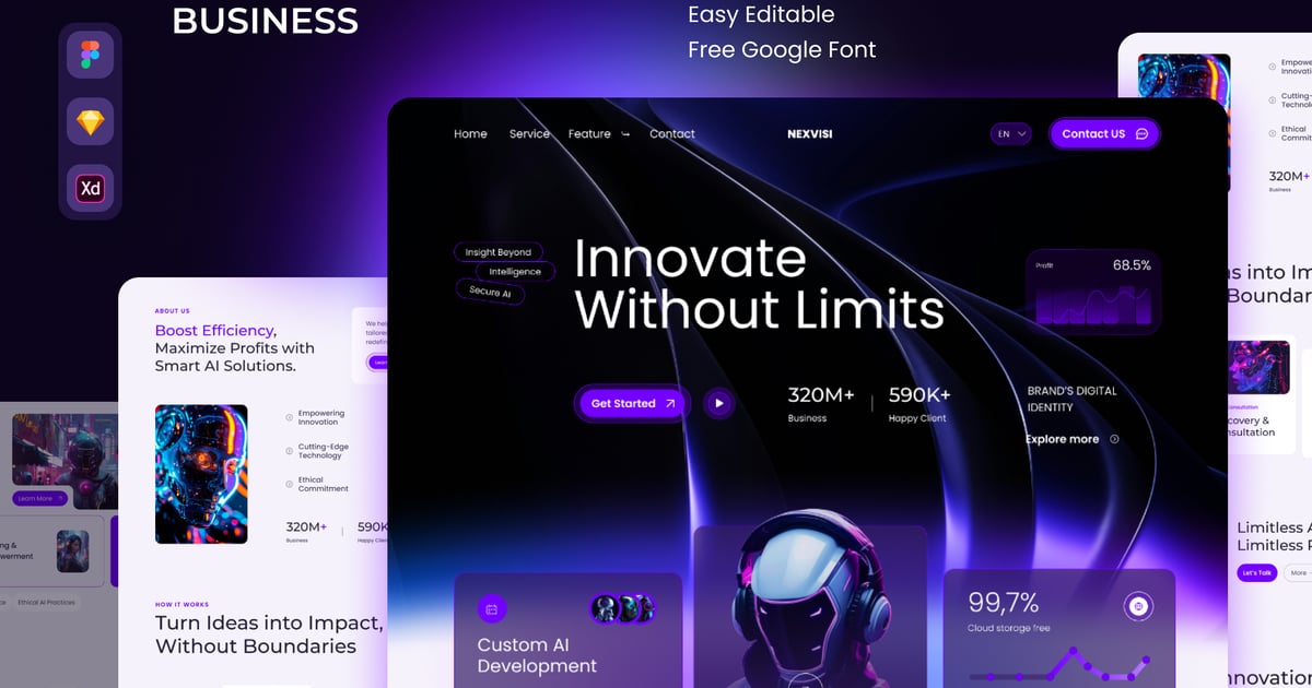 使用 **Orion** 打造引人入胜的对话体验。Orion 是一款现代化的移动 UI 模板,专为 AI 聊天助手、语音交互和智能支持应用而设计。该套件拥有简洁的布局、流畅的字体和交互式组件,可帮助您构建将 AI 智能与用户友好设计相结合的直观应用。