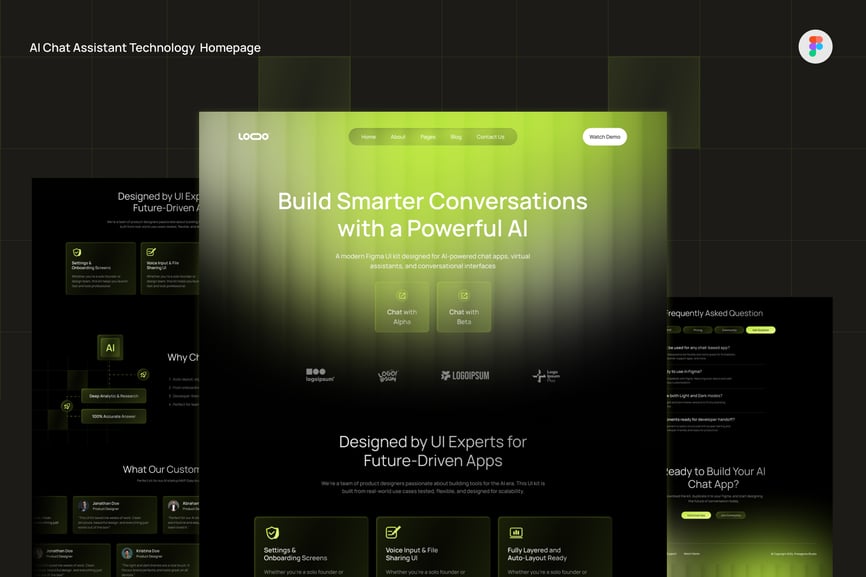 **未来感十足的现代AI聊天助手技术——Figma首页UI模板**