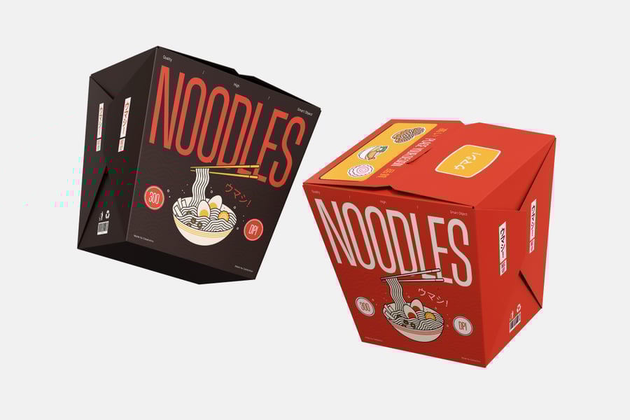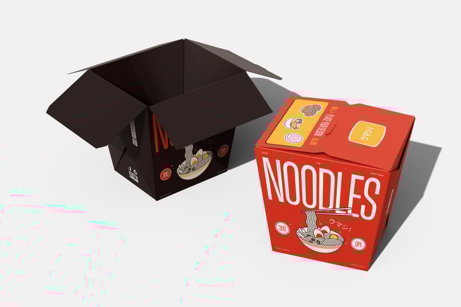 这款面条盒样机是一套专业的、高分辨率的PSD文件,专为展示食品包装设计而打造,尤其适用于亚洲美食或外卖品牌。它提供俯视图、侧视图和开箱视图等多个角度,并可通过智能对象轻松进行自定义。对于从事快餐、面馆或外卖服务项目的设计师而言,这款样机是理想之选,能够以醒目诱人的视觉效果呈现您的设计。