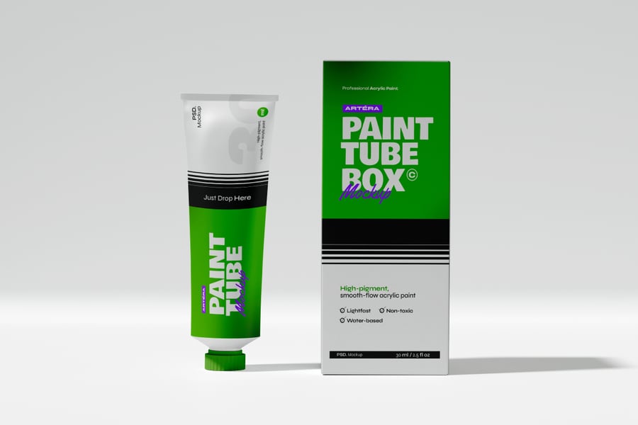 带包装盒的颜料管模型