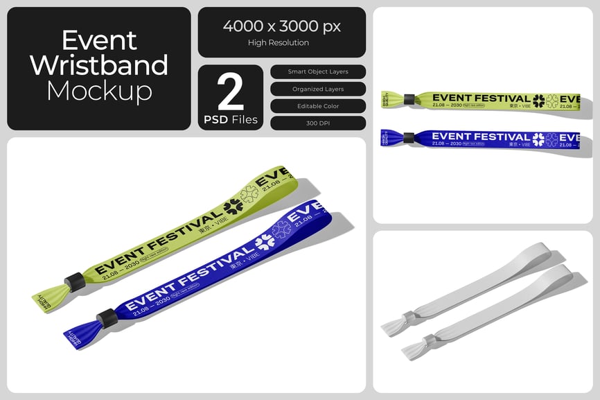 使用这款**逼真的活动手环样机**,轻松打造您的活动品牌形象。这款样机适用于各种场合,例如节日庆典、音乐会或企业通行证。**它非常适合活动组织者、品牌推广套装或周边产品系列**,以简洁中性的场景展现了手环缠绕在手腕上的精致细节。