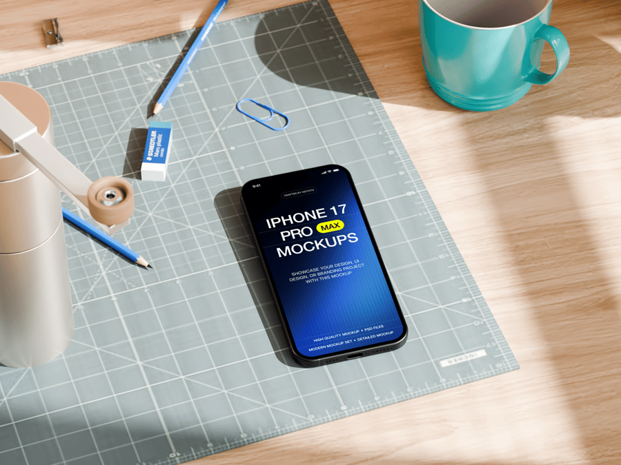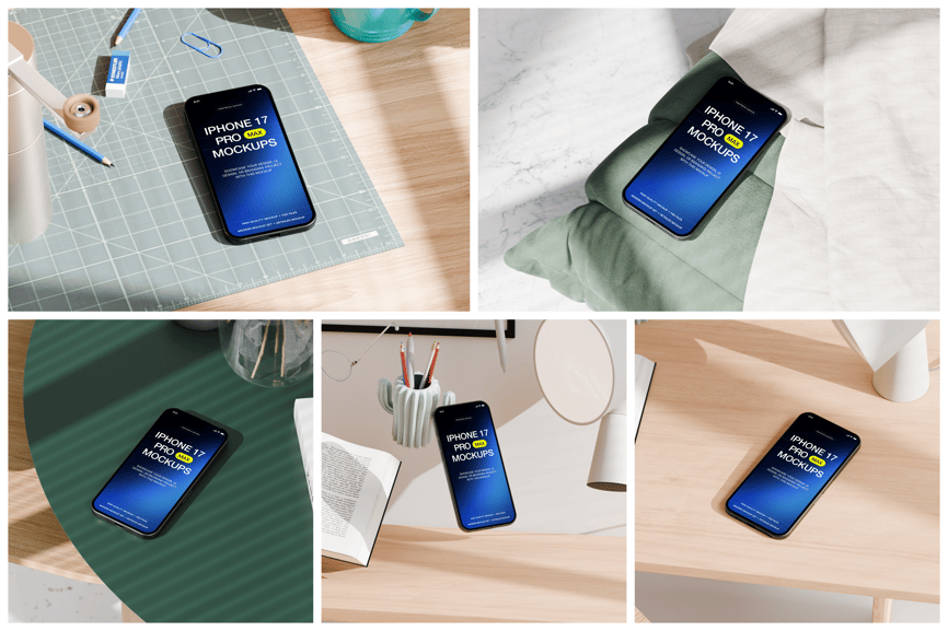 **Soft Interior Desk & Home iPhone 17 Pro Max Mockups** 是一套高级模型,旨在展示您的移动 UI、应用程序设计和产品屏幕在平静、现代的室内环境中的效果。