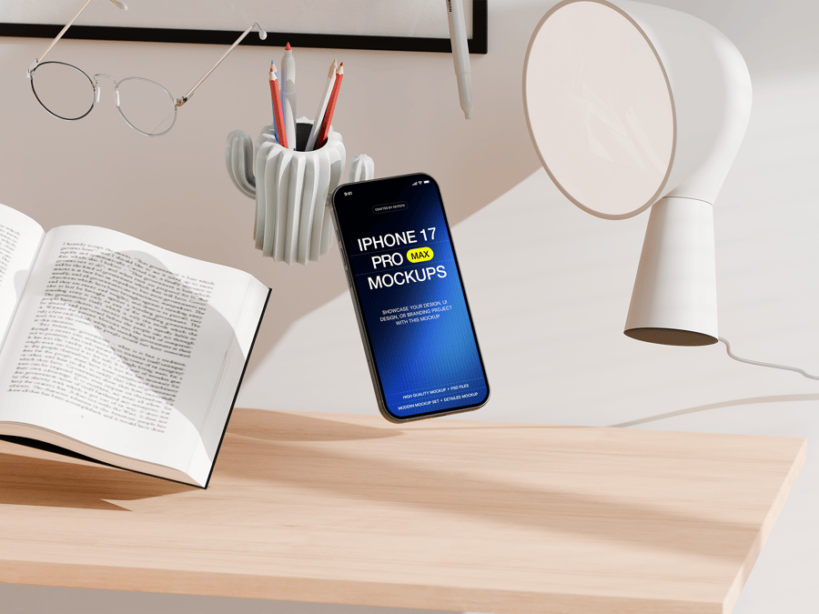风格化的家居和工作空间 iPhone 17 Pro Max 模型