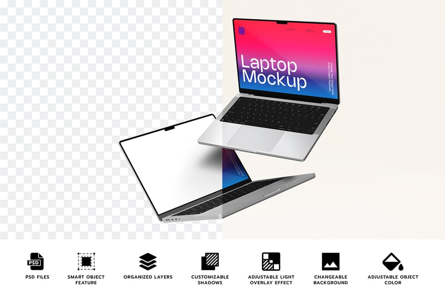 这款笔记本电脑模型非常适合以专业布局展示网站、应用程序和数字品牌。它拥有清晰的屏幕细节、逼真的光照效果以及便捷的智能对象编辑功能。使用这款笔记本电脑模型,您可以创建精美且可直接用于客户的演示文稿,充分展现您的数字作品。