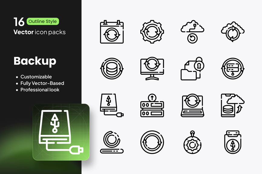 备份图标 – 16 个矢量轮廓