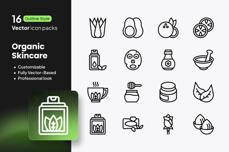 有机护肤图标 – 16 个矢量轮廓