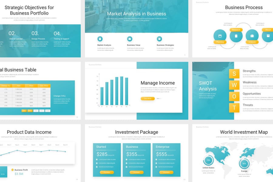 使用**商业组合演示模板**提升您的演示效果。这款功能多样且时尚的模板旨在满足各行各业专业人士的需求。无论您是向客户提案、展示季度报告,还是宣传您的创业项目,这款模板都能满足您的需求。