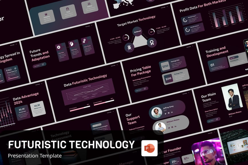 **未来科技演示文稿**是一款现代未来科技主题的 PowerPoint 模板。这类演示文稿对于有效地向潜在客户、合作伙伴或投资者传达产品、服务和市场定位的精髓至关重要。它将详尽的信息与赏心悦目的设计相结合,为客户打造引人入胜的演示文稿。以下是此类演示文稿通常包含内容的详细说明: