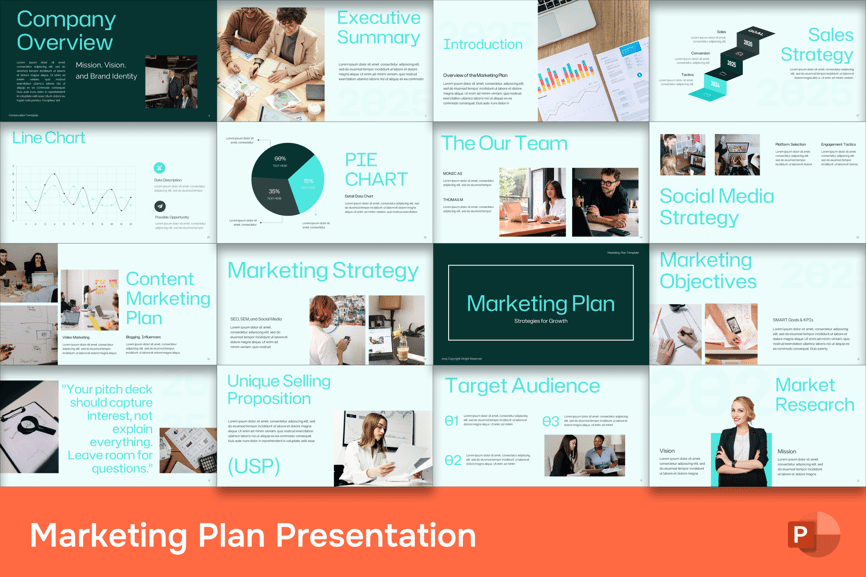 使用**营销计划**提升您的演示效果。营销计划模板是一个结构化的框架,旨在概述企业的营销策略、目标和战术。它能帮助企业制定清晰的路线图,有效地推广产品或服务,并触达目标受众。此模板非常适合希望创建数据驱动、结果导向型营销活动的初创公司、小型企业和营销团队。