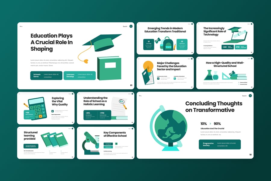 非常适合学校演示、教师简报、课堂材料、学术报告、教育项目和学习研讨会等需要清晰、易于理解和视觉上引人入胜的教育交流的场合。